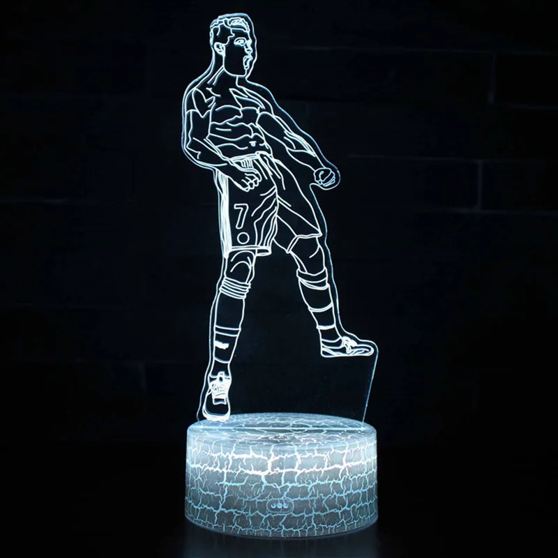 La lampe met en évidence la silhouette élégamment conçue du célèbre joueur de football Cristiano Ronaldo, éclairée par des lumières LED multicolores. L’intensité de la lumière peut être ajustée pour créer l’ambiance parfaite pour votre espace.